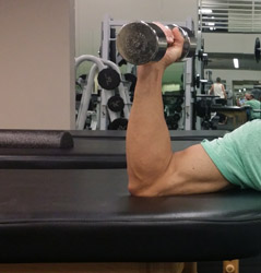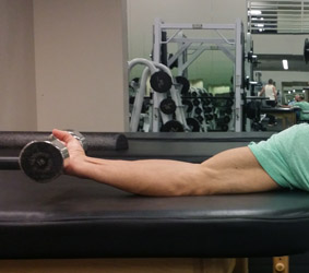 “What you’ll notice is that regardless of the weight you have in your hand, it does not require any force from your biceps, to maintain your forearm in a perfectly vertical position. This position is parallel with gravity - so it's neutral. This is the reason why light posts are vertical, as well as most support beams under bridges and in buildings.He used this photo to correctly illustrate this point:“Now, allow your forearm to come almost all the way down, so that the dumbbell in your hand is a fraction of an inch away from touching the table. You’ll notice that this position requires considerable force, on the part of your biceps, to hold that position. This position is the 'maximally active' position. It is where the lever (your forearm, in this case) and the direction of resistance (gravity) are mostly perpendicular.”